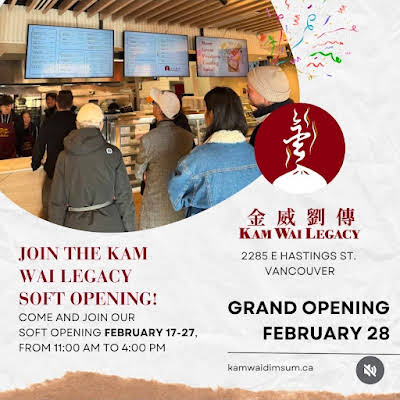 DIM SUM KAM WAI LEGACY NOW OPEN Love to see new restaurants opening. This longtime Chinatown favorite has opened a second location in the Grandview-Woodlands …
