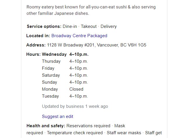There could be any number of reasons why the restaurant decided to cut lunch hours. The cost of food, understaffed, not enough customers at lunch, or maybe the pandemic restrictions like the BC vaccine card could all be reasons why lunch is no longer on the menu. The vaccine card is required when dining at Tomokazu.
