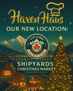Haxen Haus is no longer vending at the Vancouver Christmas Market. The popular vendor serves Schweinshaxe German Pork Hock and the display attracts many hungry fans. A long time favorite at various festivals around the Vancouver area Haxen Haus will be moving to The Shipyards in North Vancouver.