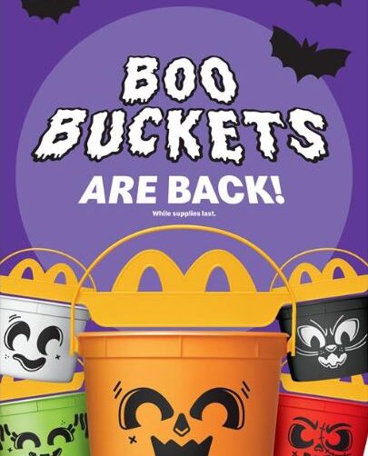 NOW AVAILABLE BOO BUCKET 2025 Now available at McDonald’s Canada Boo Bucket 2025! Get ready for Halloween Trick or Treat with these annual McDonald’s traditions.